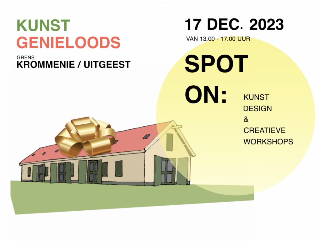 Op zondag 17 december a.s., van 13.00-17.00 uur, staan de deuren van de Kunstgenieloods open voor iedereen met een neus voor kunst, design, creatieve workshops en originele kado’s voor de feestdagen. Ontmoet de kunstenaars, zij nemen de bezoekers mee in hun creatieve maakproces. Dit alles onder het genot van een glaasje Gluhwein.